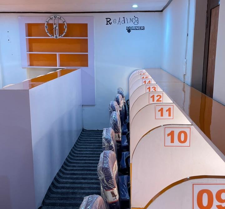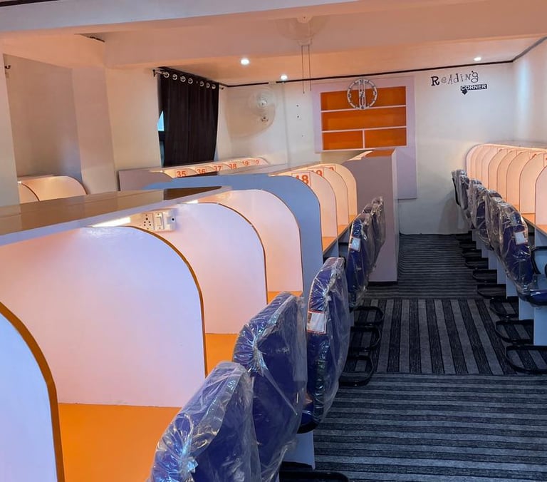 A peaceful study hall for students preparing for competitive exams, board exams, and higher education. Flexible timings, affordable fees, and a distraction-free environment.